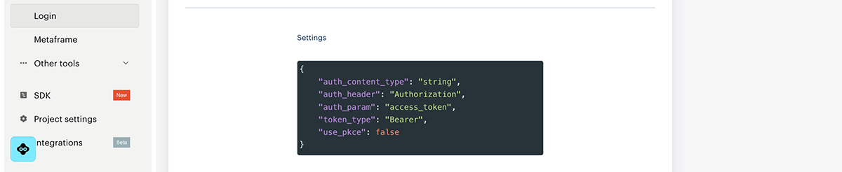 auth_content_type— the value of theContent-Typeheader.auth_header— the header that passes the authorization token when requesting user data (authorization in the header).auth_param— the name of the query parameter that passes the authorization token when requesting user data (authorization in the parameter).token_type— token type. Possible values:Bearer,OAuth.use_pkce— a flag indicating the use of the PKCE (Proof Key for Code Exchange) technology during authorization.