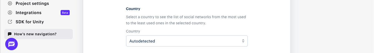 The Country parameter is set to Autodetected by default. To change this setting, use the Country drop-down list on the Widget customization page.
