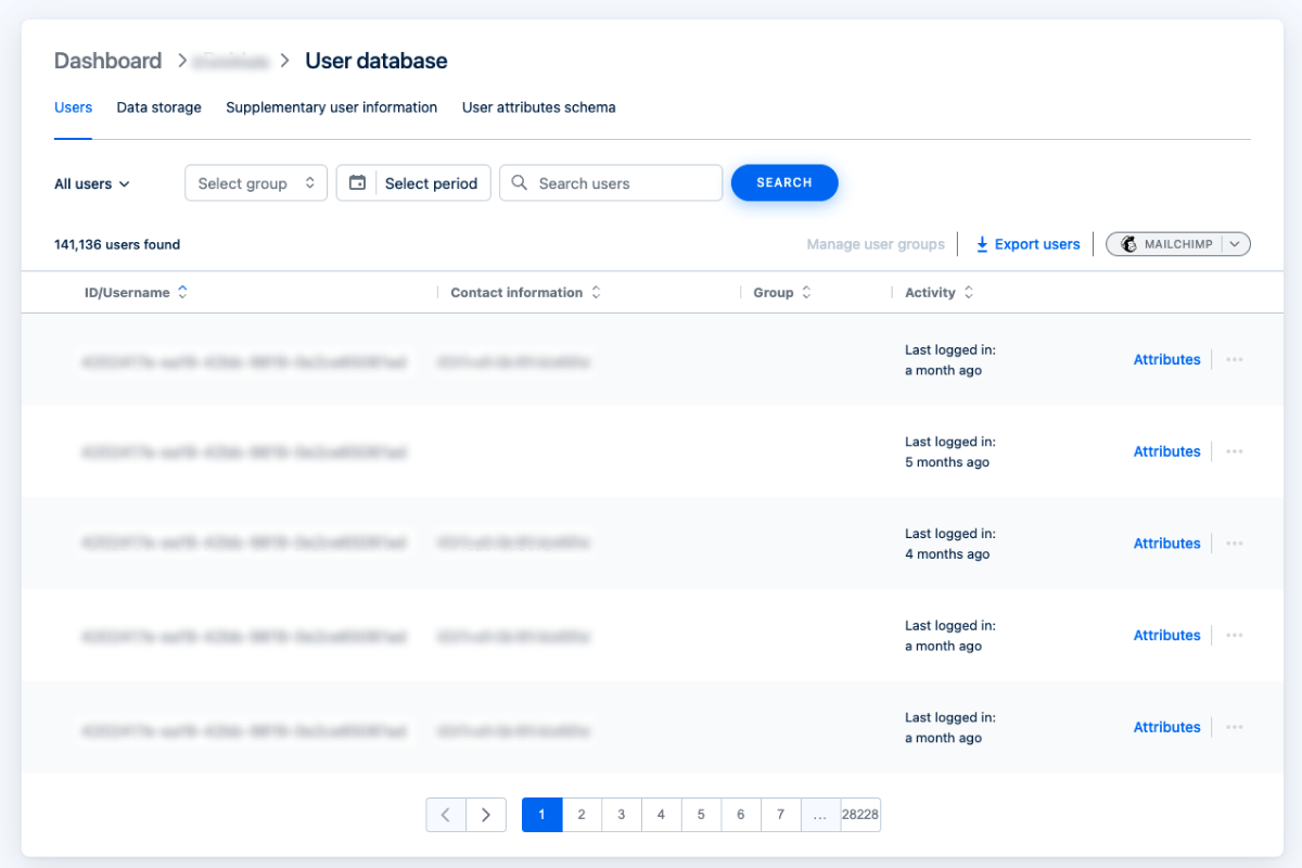 - Find the user in the table and click Attributes in the corresponding string.