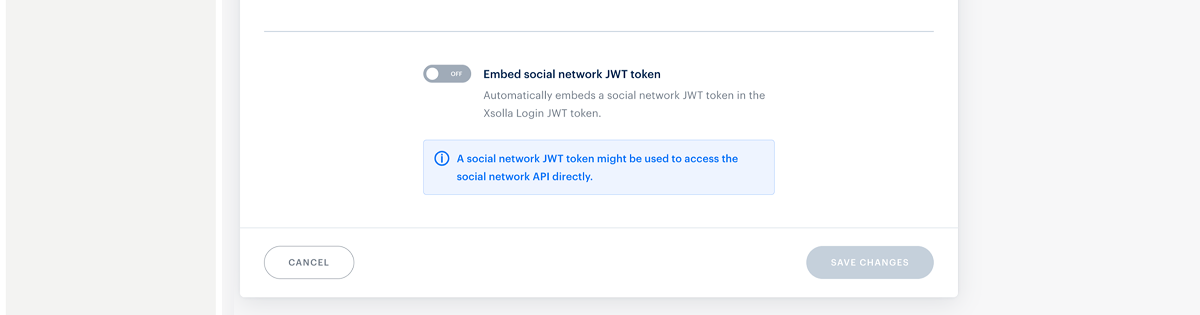 - Set the Embed social network JWT token toggler to On.