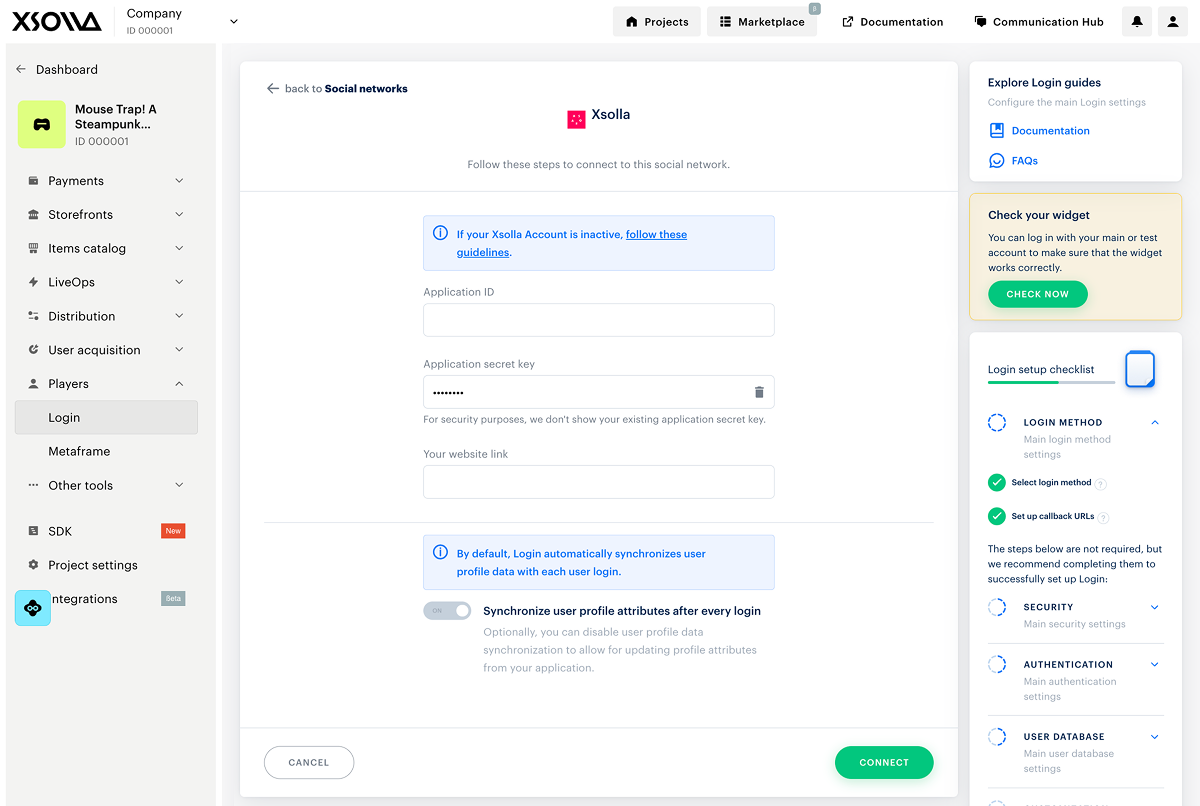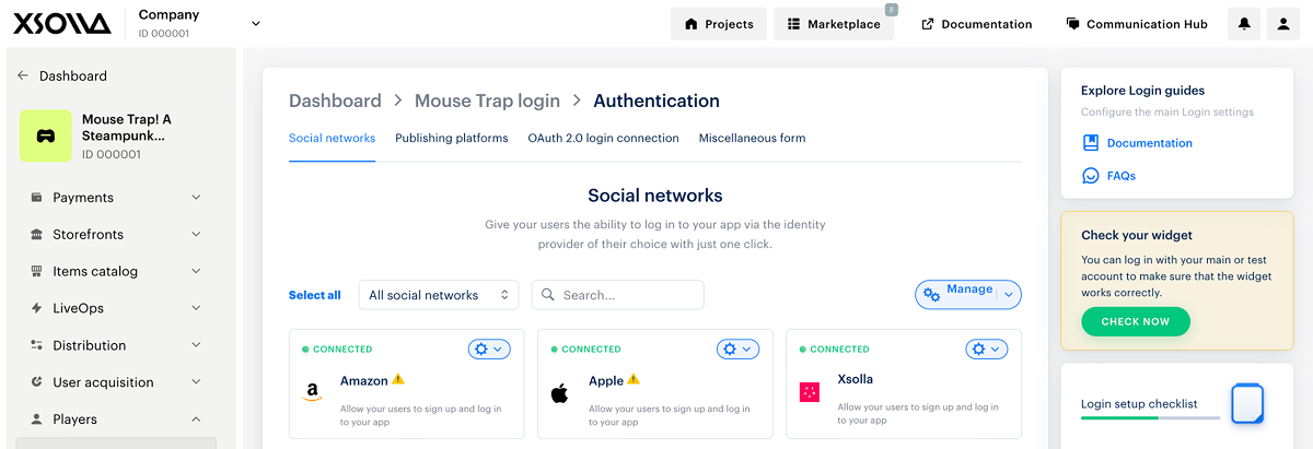 - Enable Xsolla as a social network.