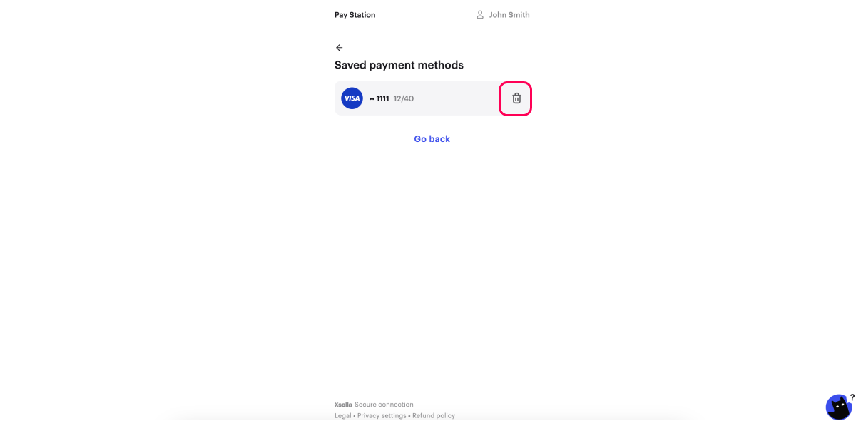Delete saved card