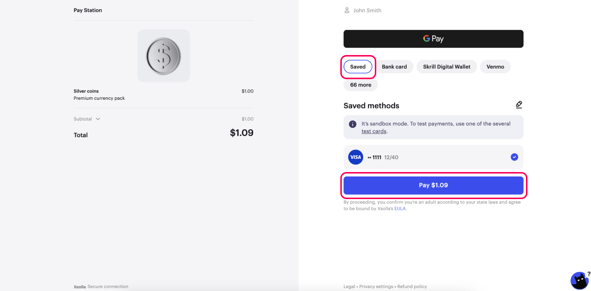 In sandbox mode, you can test the following payment UI interaction scenarios while making a payment with a bank card: