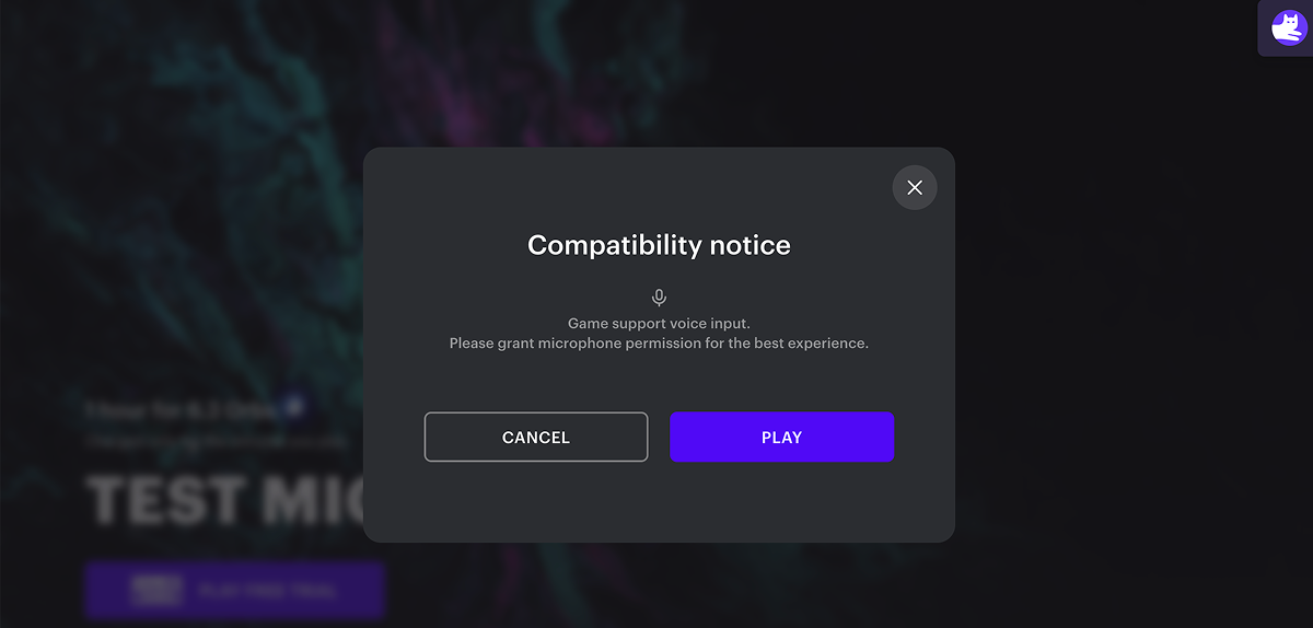 The voice input ensures proper functionality of cloud games that require microphone access, e.g., for voice control or in-game voice chat. For these games, a compatibility message appears before launch, informing the user that microphone access is required.