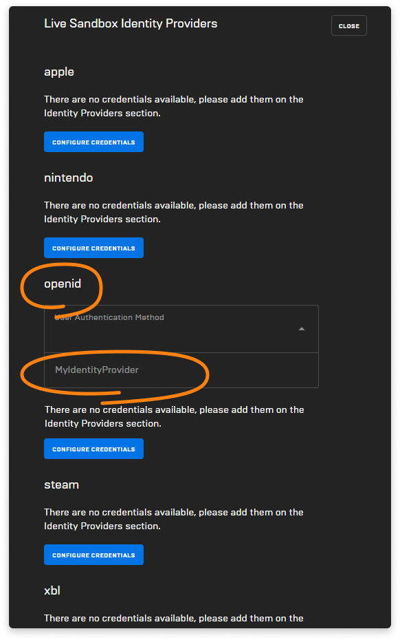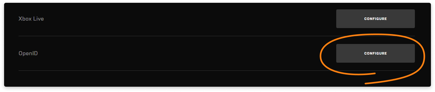 - In the Identity Providers section, select the OpenID provider and press CONFIGURE.