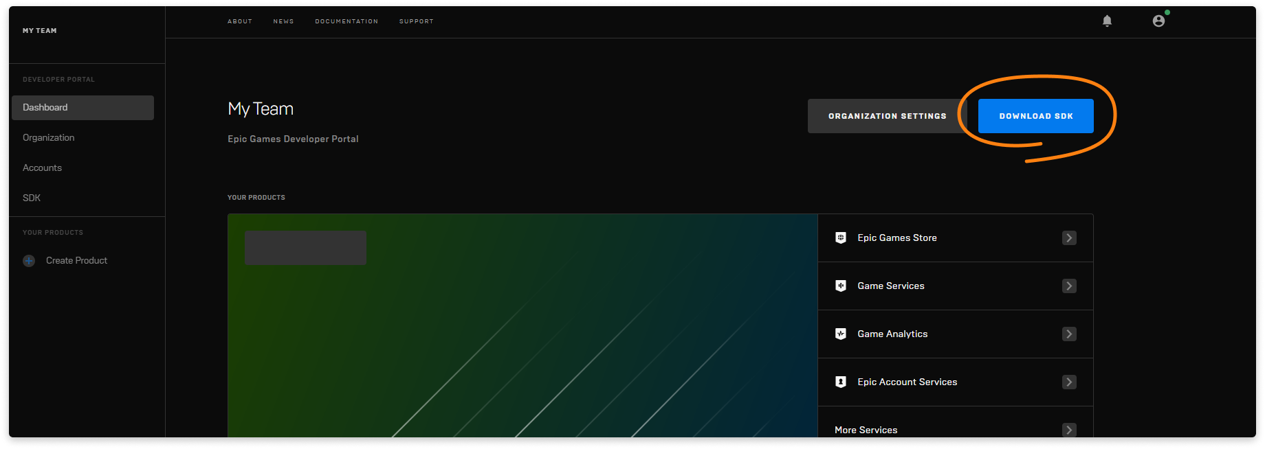 - Go to the Dashboard section of the Epic Developer Portal and download SDK.