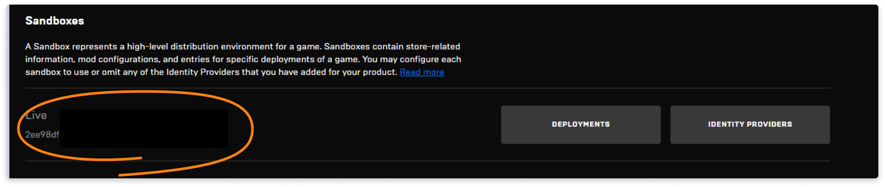 7/** The sandbox id for the running application, found on the dev portal */