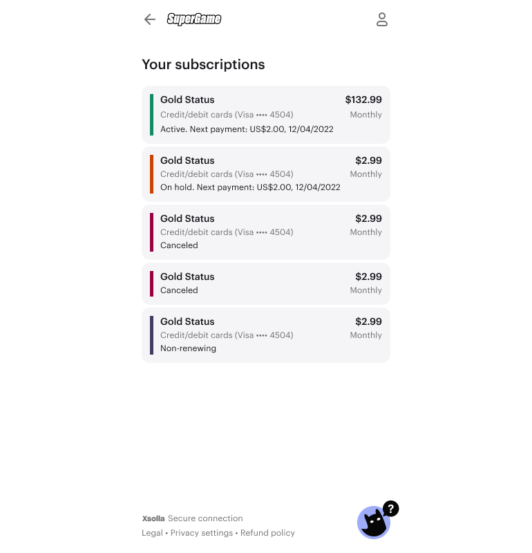 The subscriber account is a service that allows users to view and manage their subscriptions configured in your Xsolla project.