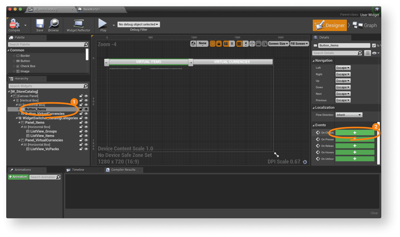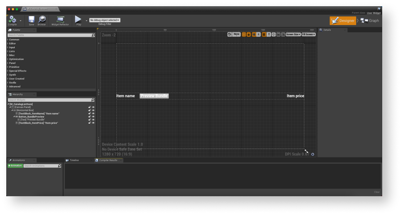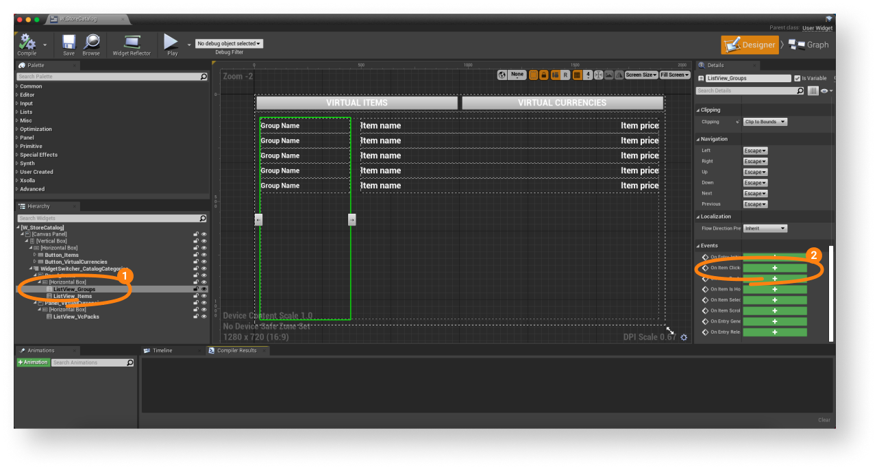 - Open a widget blueprint for an item.