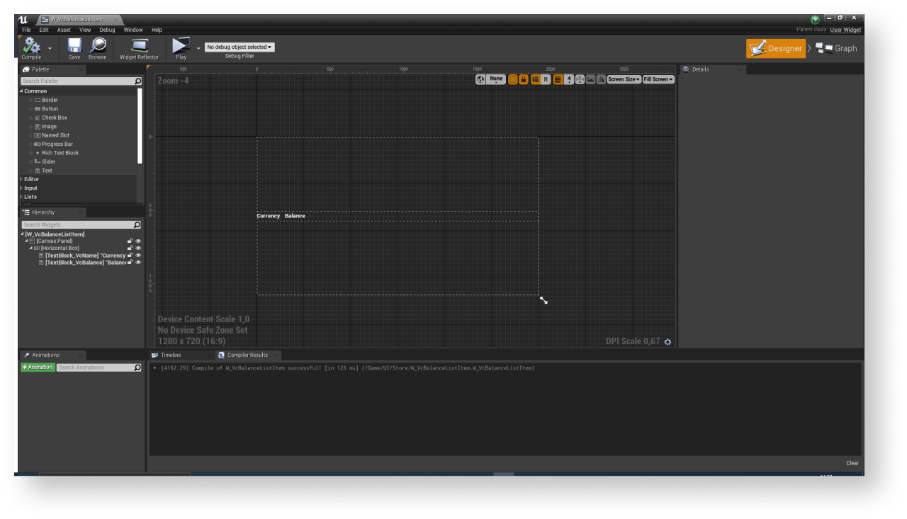 Details panel, select a previously created class for balance display in theEntry Widget Class field. - Implement logic for filling out the list of virtual currencies: