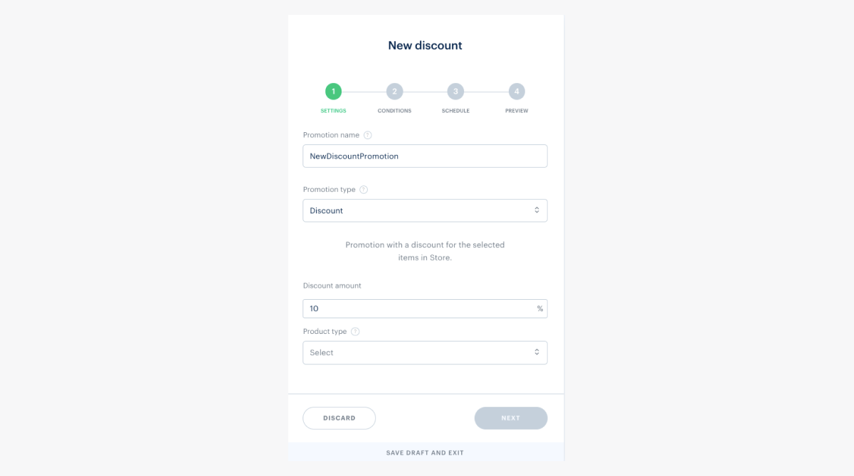 - Sélectionnez Discount sous Promotion type ;