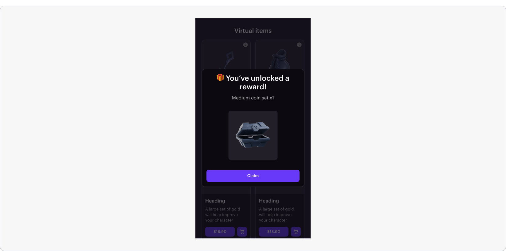 報酬ポップアップは、「ウェブアプリ報酬」トグルがオンになっていて報酬アイテムが選択されている場合のみ表示されます。