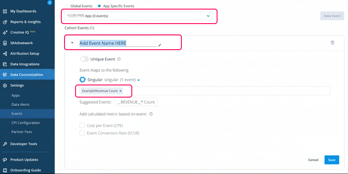 인앱 이벤트에 대한 데이터를 수신하는 프로세스입니다. 자세한 내용은 Singular 문서를 참조하십시오.