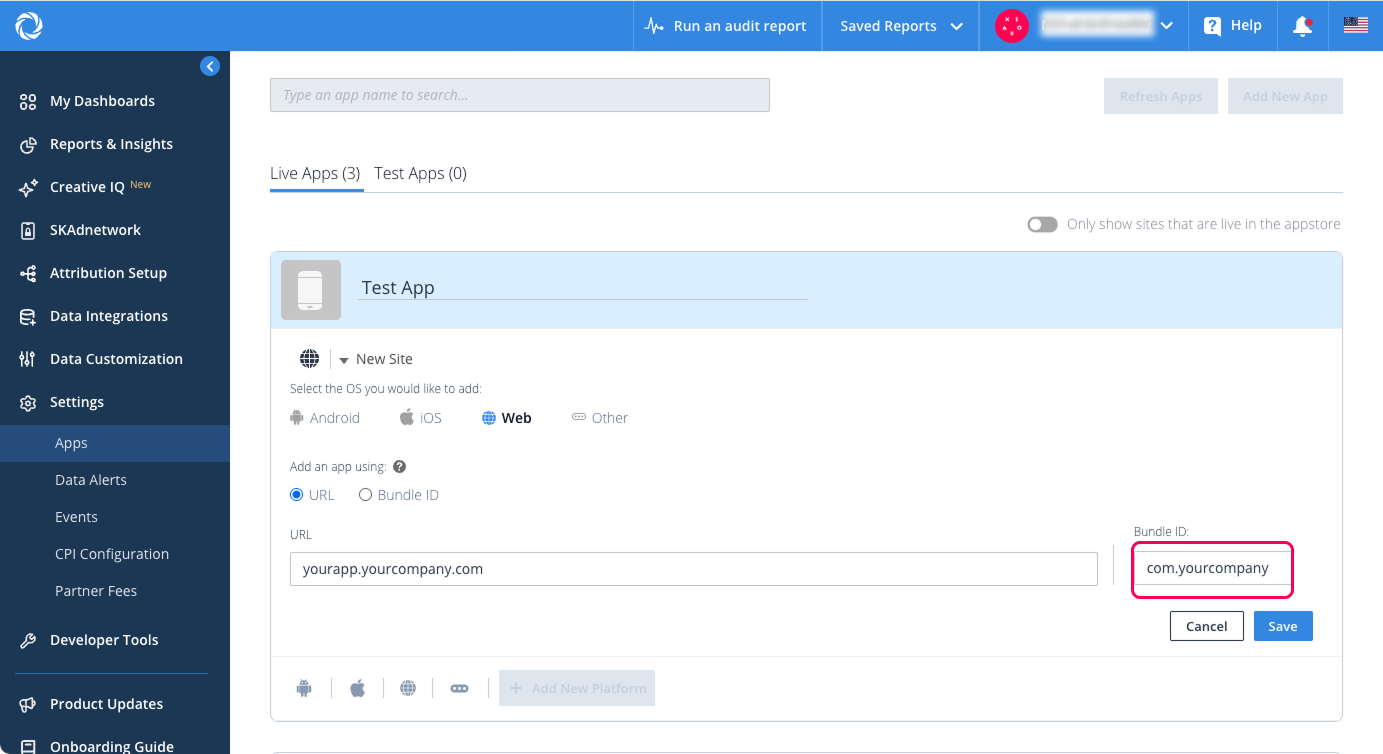 CUID를 구성하려면 Singular SDK 참조 문서를 참조하십시오.
