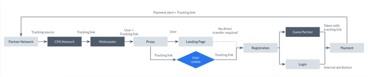 tracking_id를 요청 매개 변수로부터 웹 사이트 쿠키에 저장합니다. 요청 예시:https://playnewz.com?utm_source=n6LI9yVu&utm_campaign=5b9bff5f9d31b&tracking_id=19e2DLjNTk2YOdXA4d8J3NReNkXNafhC.- 새로운 사용자가 만들어진 후에