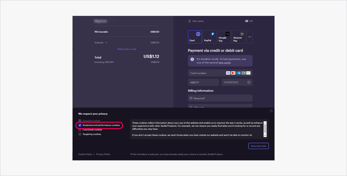To track events happening in the payment UI when users interact with it, connect analytics platforms in your Publisher Account: