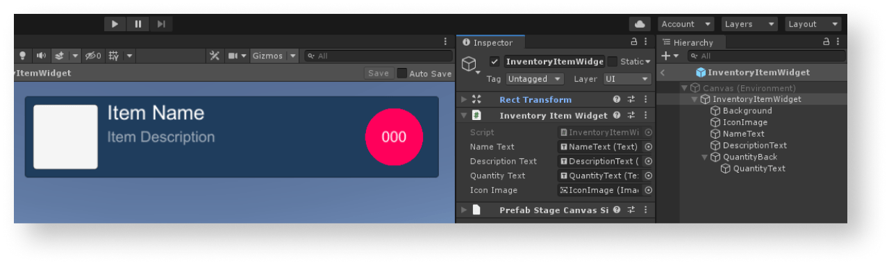 WidgetsContainer— контейнер для виджетов;WidgetPrefab— префаб виджета предмета.