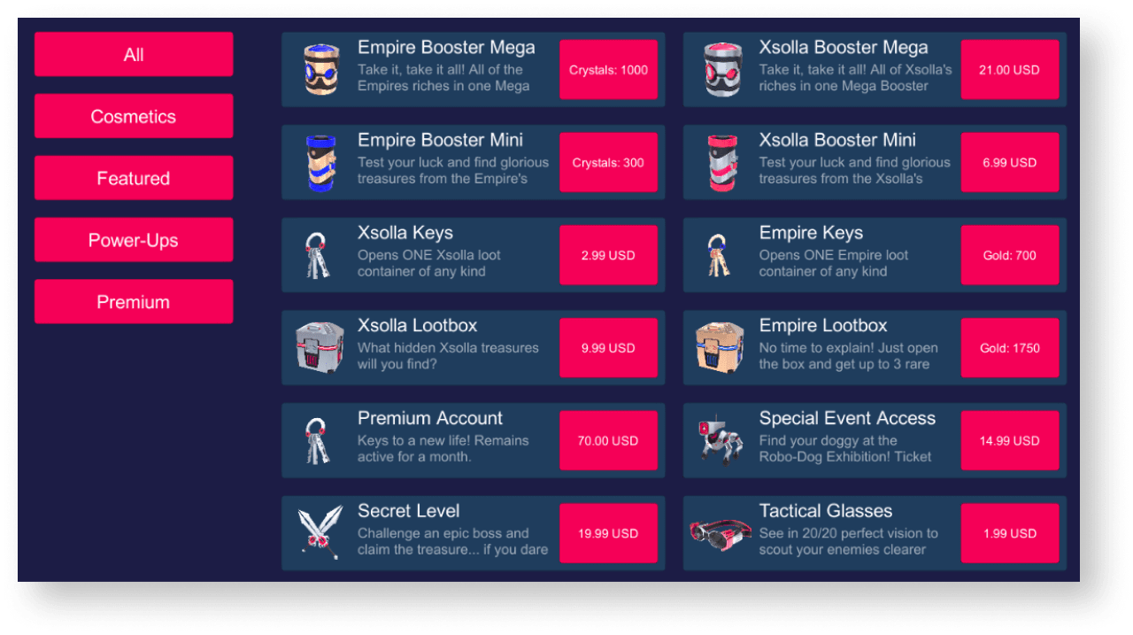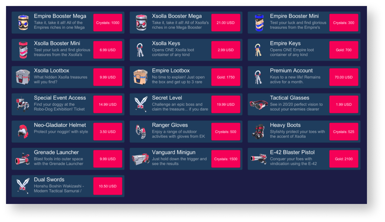 Вы также можете отображать другие данные о товаре, которые хранятся во внутриигровом магазине.