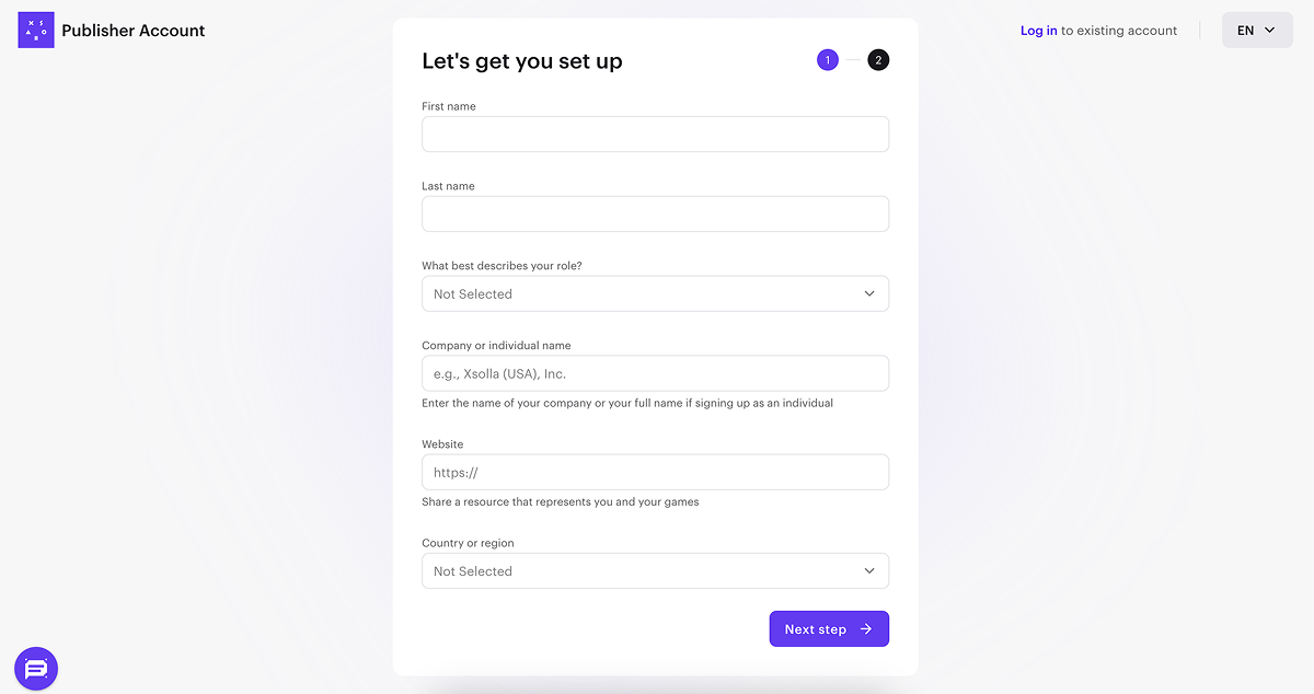 - Выберите тип проекта: Игра, Игровая платформа или Другое.
