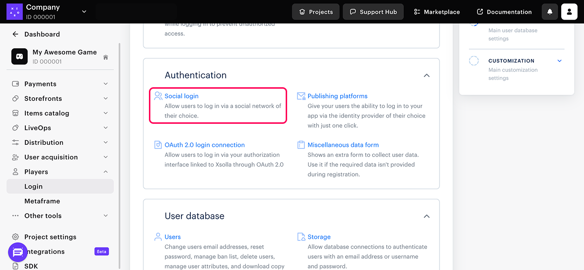 - Позволяет сочетать безопасность Xsolla Login с преимуществами использования ID пользователя из игры. Виджет Xsolla Login функционирует изолированно от игрового клиента — взаимодействие с игрой осуществляется через вебхуки. Привязанный ID пользователя используется для быстрого начисления покупок пользователю в игру и для персонализированных предложений.