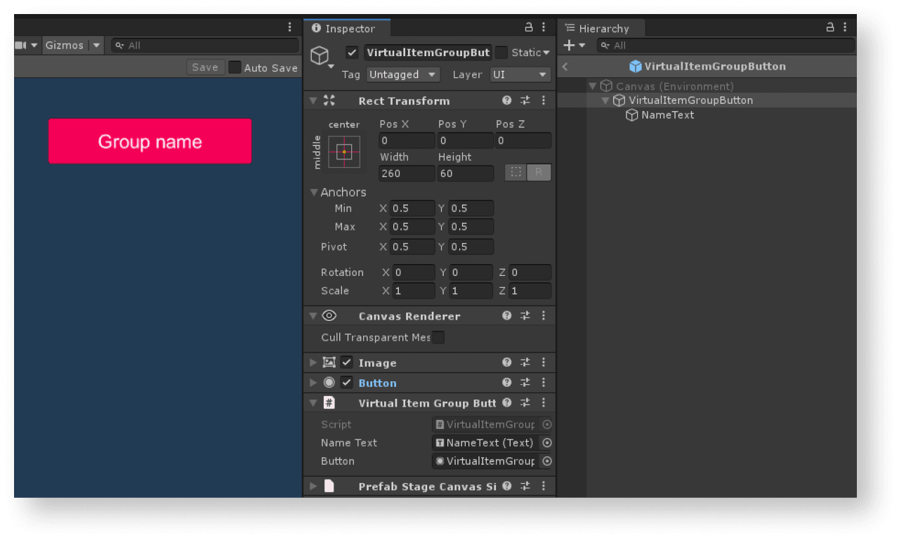 VirtualItemsPageinherited from theMonoBehaviourbase class. - Declare the following variables: