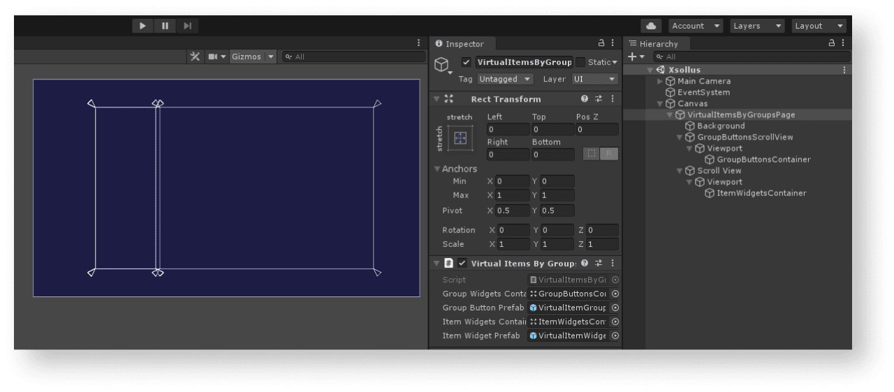 Inspector panel, clickAdd Component and select aVirtualItemsPagescript.