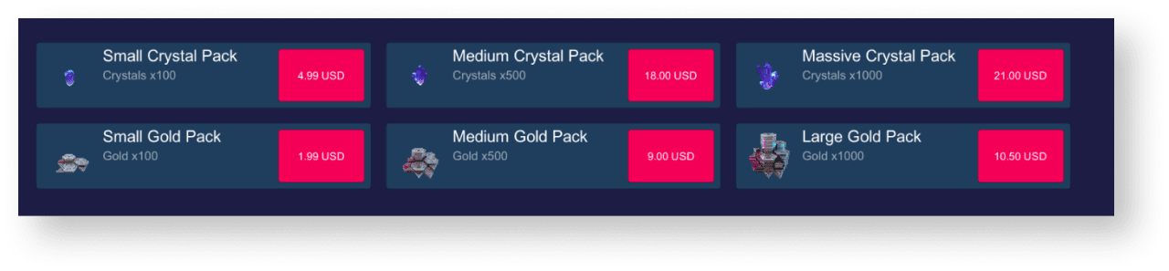 - packages of virtual currency
