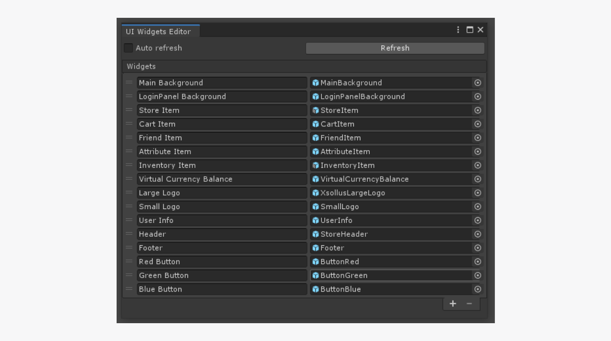 • Refresh button — lets you apply widget changes in prefabs.