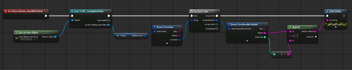 Graph view. - Implement logic for displaying bundle content (a list of items in the bundle and the quantity of every item in the bundle). To do this, add nodes as shown in the following picture.