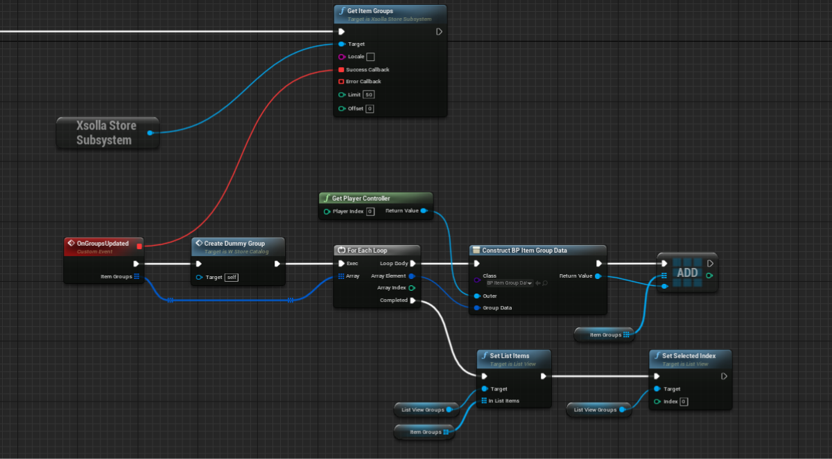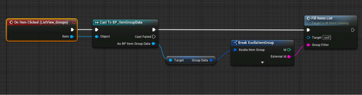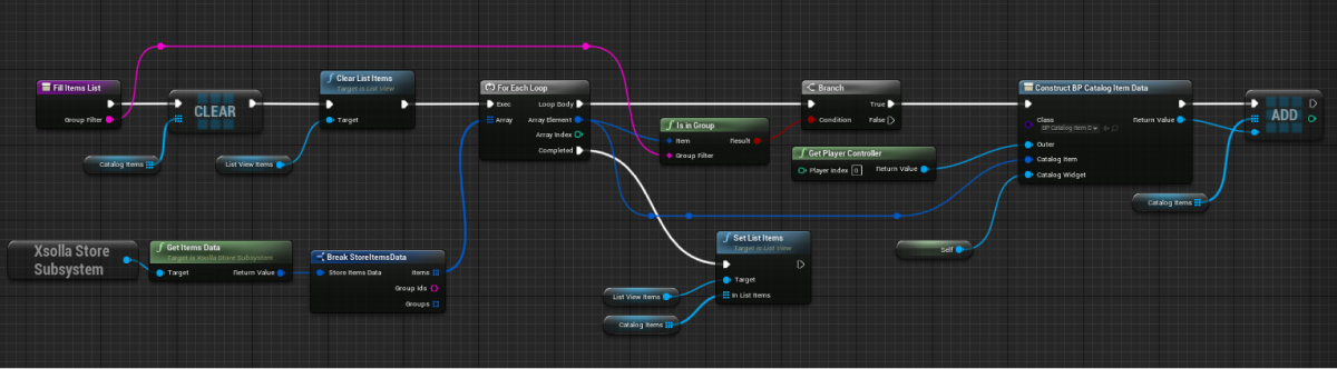 - Implement logic for filling out the list of items. To do this, add nodes as shown in the following picture.