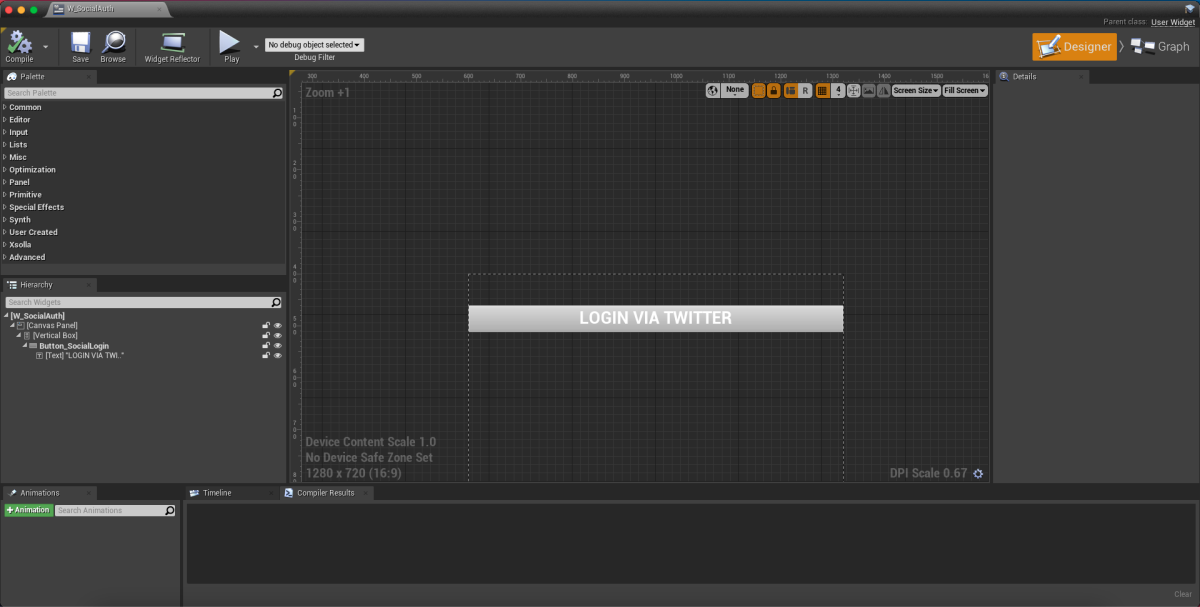 User Interface > Widget Blueprint . - In the widget blueprint, add the social login button.
