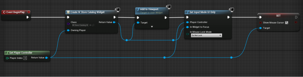 - Implement widget display when the level is started. To do this, add nodes as shown below. In the