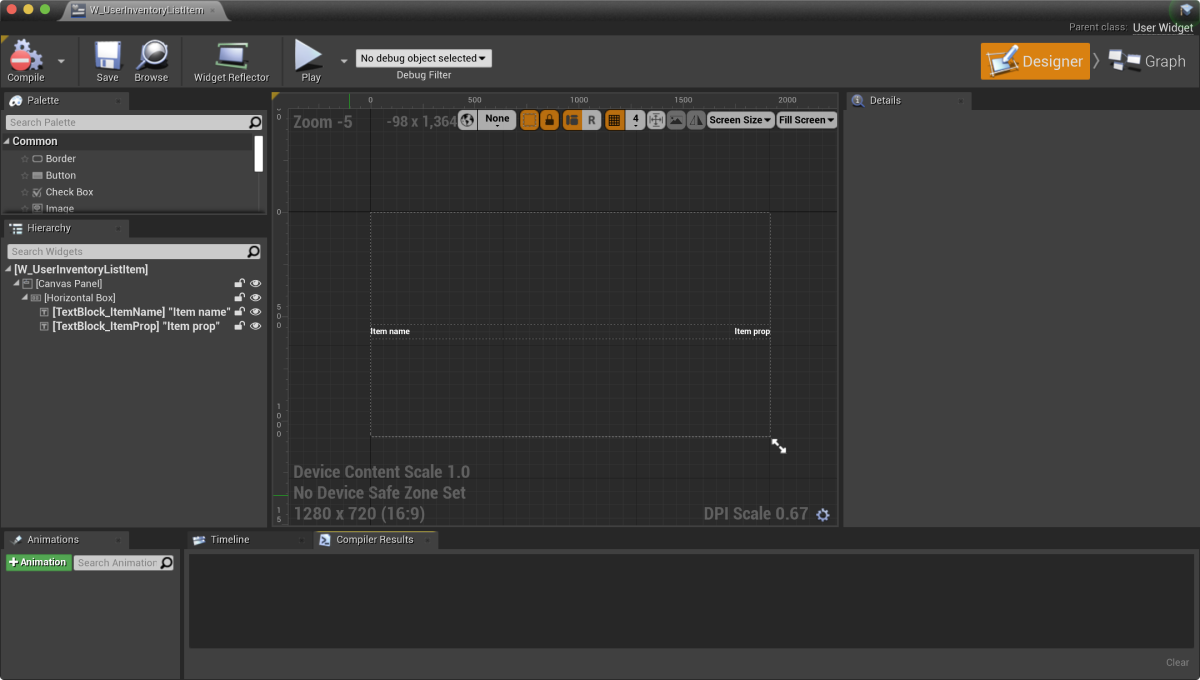 - Open a widget blueprint for an item.