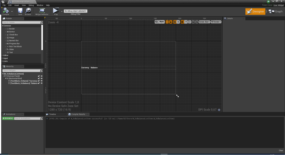 Details panel, select a previously created class for balance display in theEntry Widget Class field. - Implement logic for filling out the list of virtual currencies:
