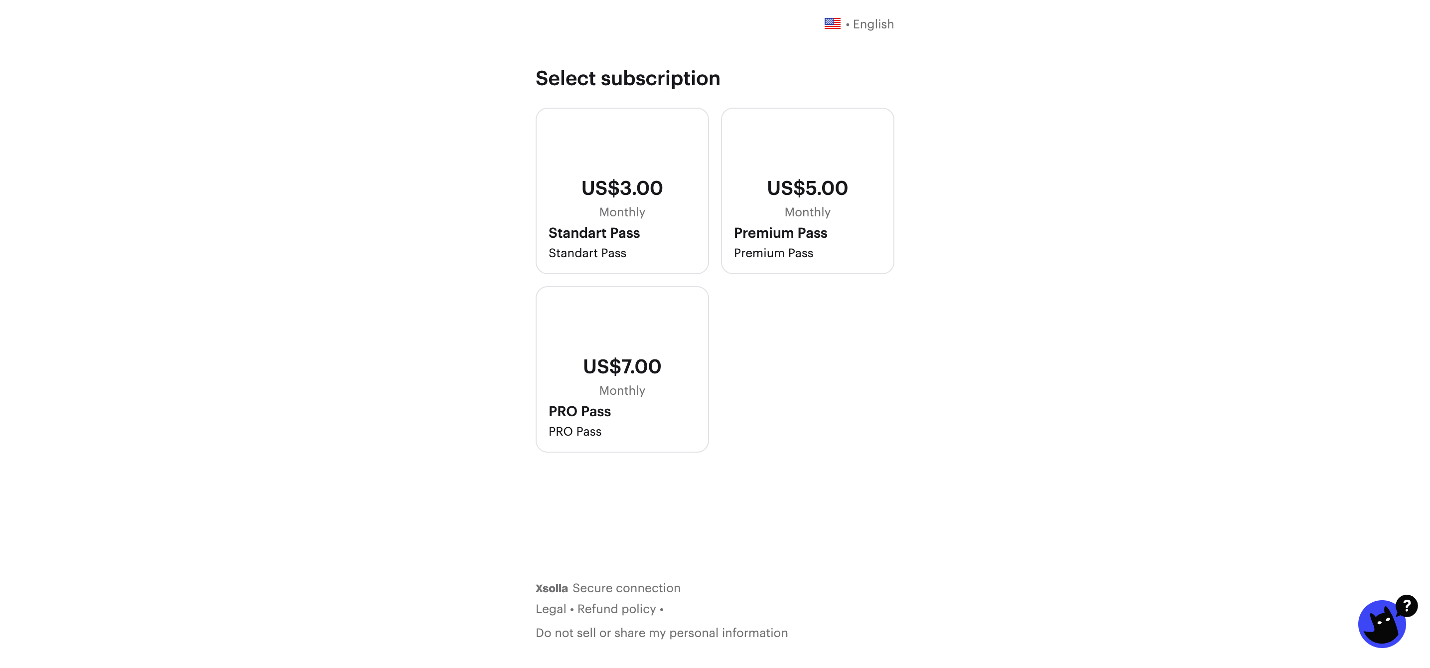 An example of displaying the subscription catalog in the Xsolla Pay Station: