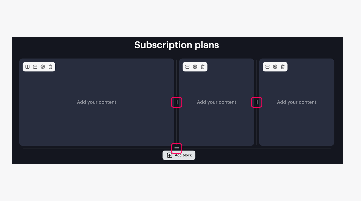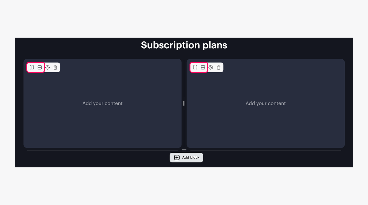 We recommend using the Cards grid block for subscription sales — it offers extensive customization options for both the cards themselves and their layout.
