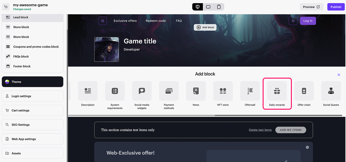 Set up Daily rewards block in Site Builder