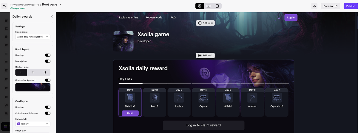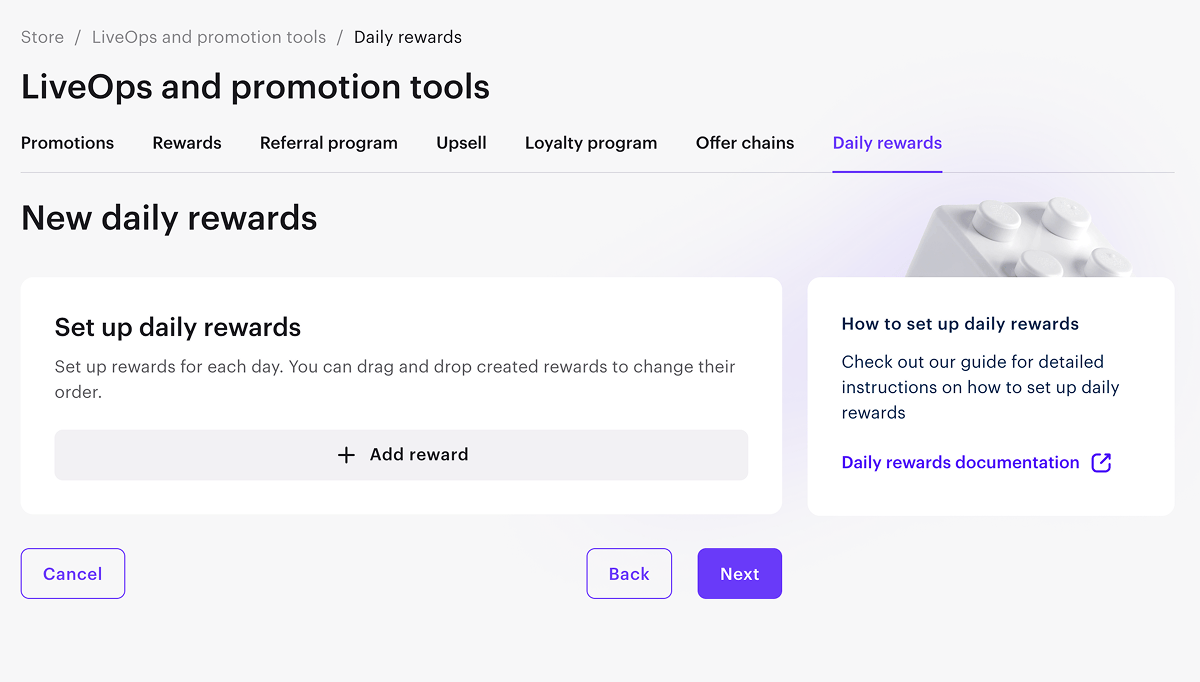 - In your project in Publisher Account, go to the LiveOps > Daily rewards section.