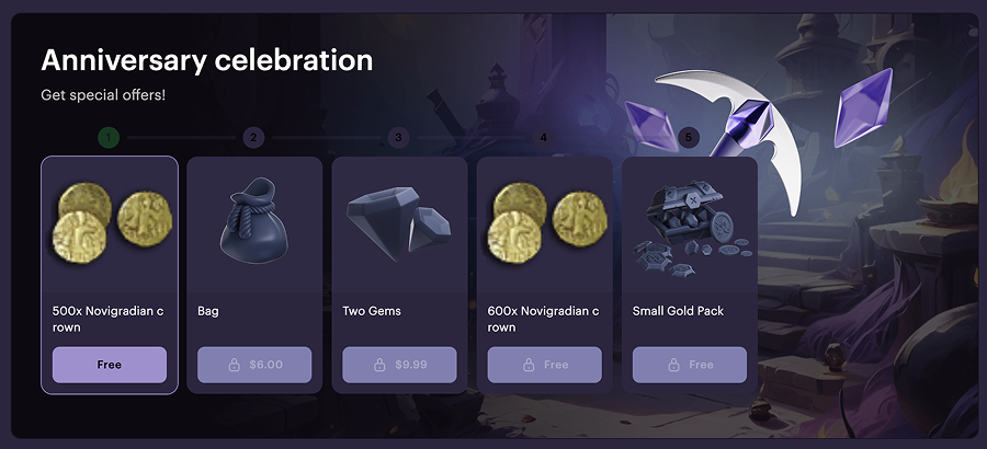 An offer chain can include exclusive items available only within the chain, as well as items at discounted prices compared to store prices. This encourages users to return to the game and complete the chain before it expires. Use this marketing tool to retain users and increase engagement.