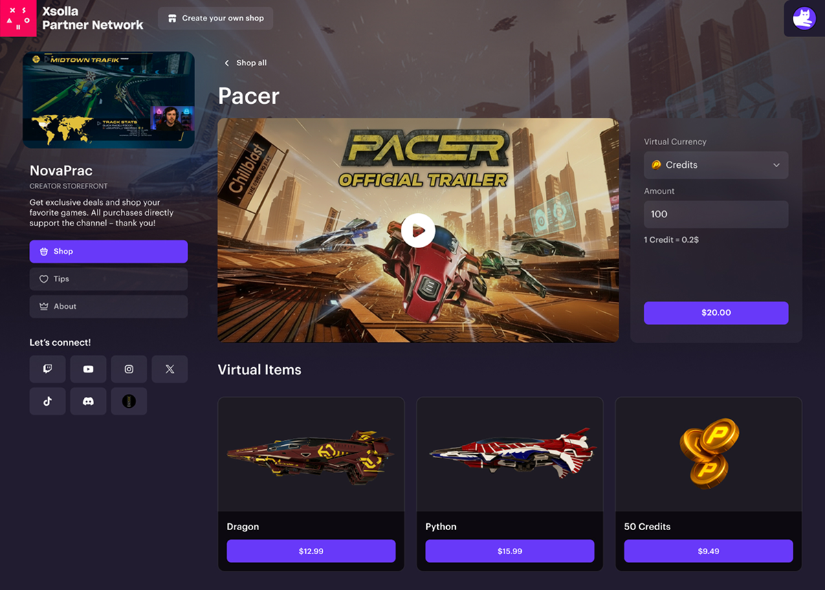 Creator Storefront is a personalized landing page that is automatically generated for each approved creator participating in your Xsolla Partner Network campaign.