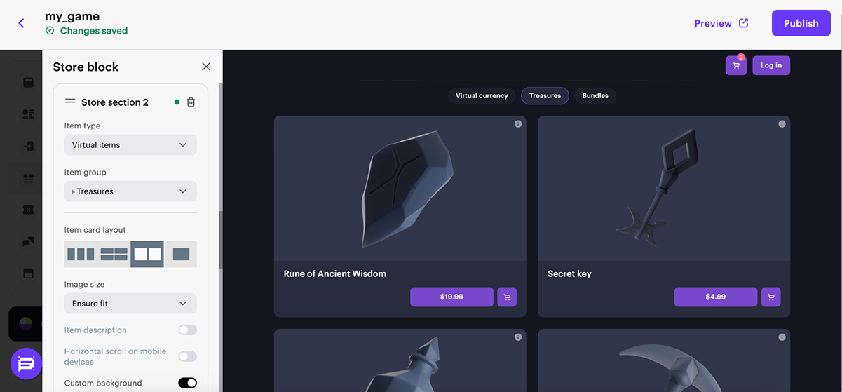 A Web Shop is a solution that allows you to sell virtual goods, virtual currency, and bundles using the Xsolla payment interface and a store interface on your website. Users will have access to over 1,000 payment methods.