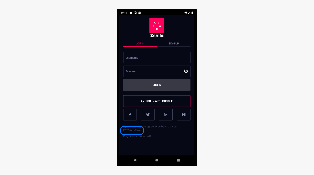 如使用Login库,请在您的应用程序中添加艾克索拉隐私政策协议链接。