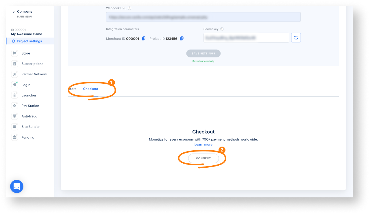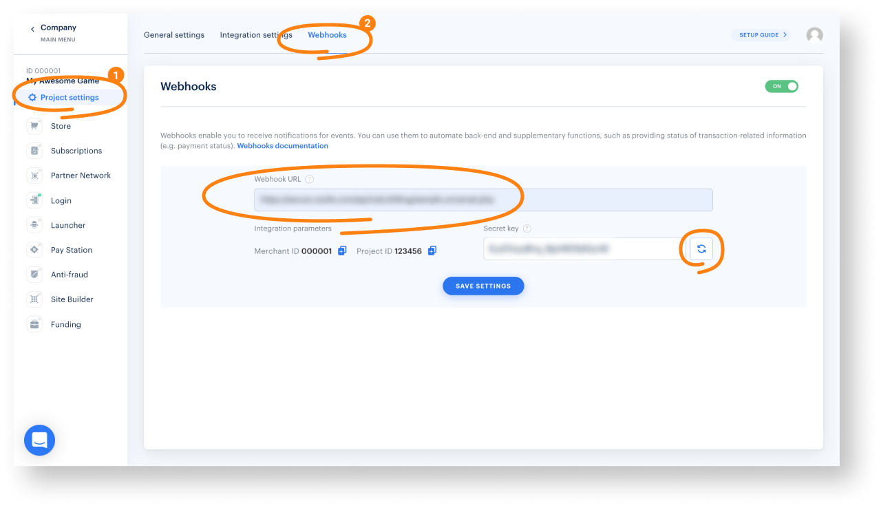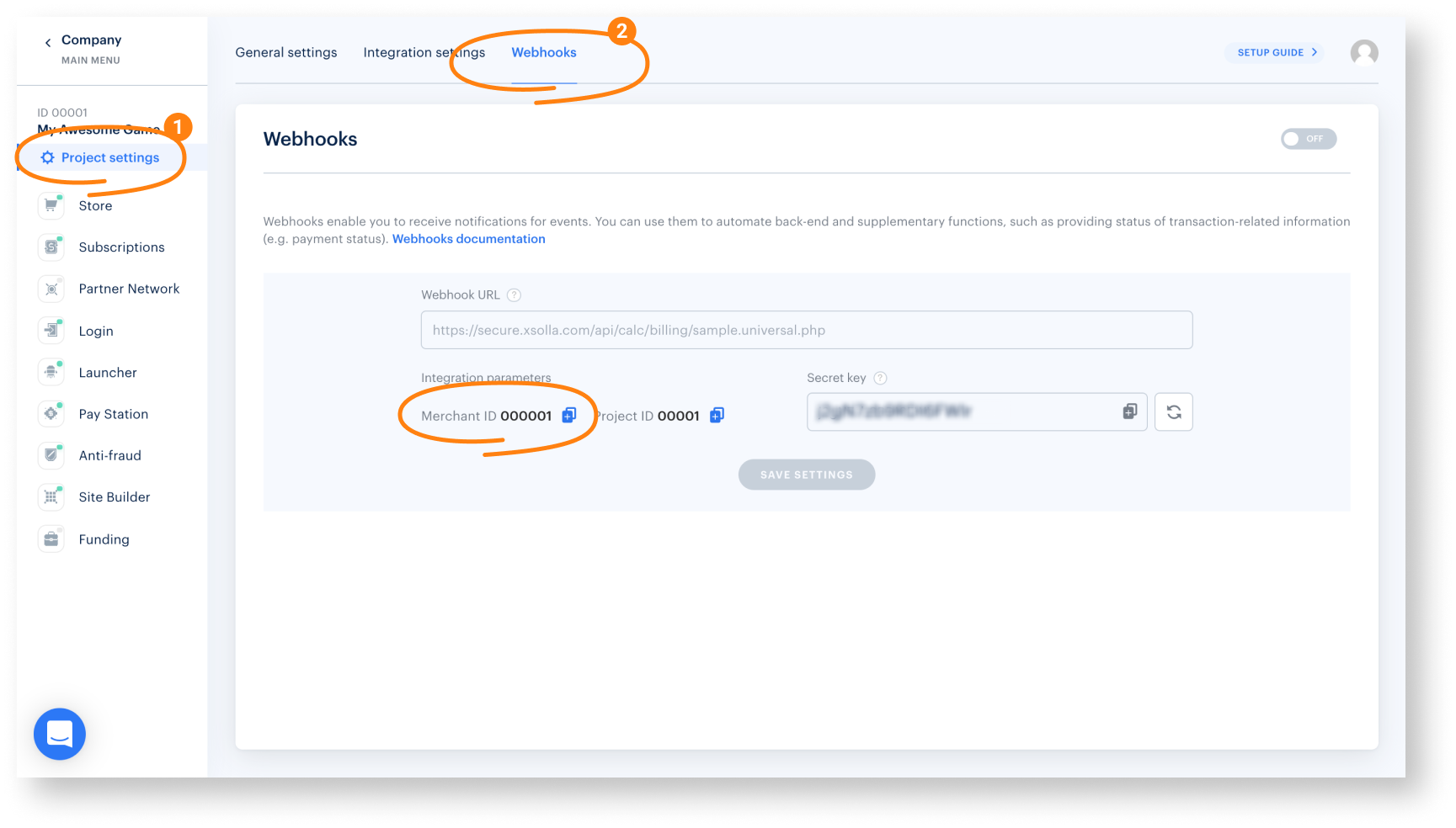 - 商户ID,可在项目设置 > Webhooks中找到。