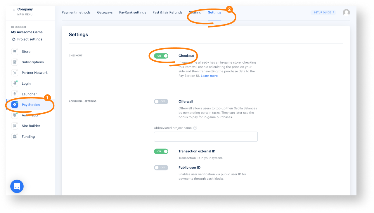 Window > Xsolla > Edit Settings 。 - 要启用沙盒模式,在