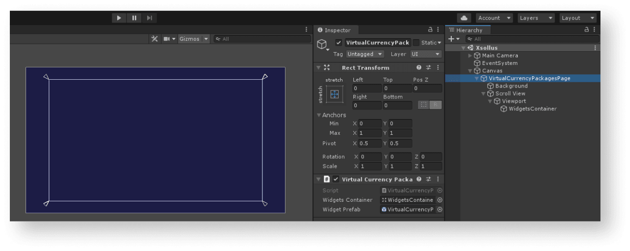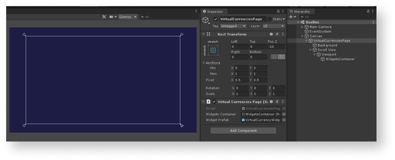 Inspector 面板中,单击Add Component ,然后选择一个VirtualCurrenciesPage脚本。