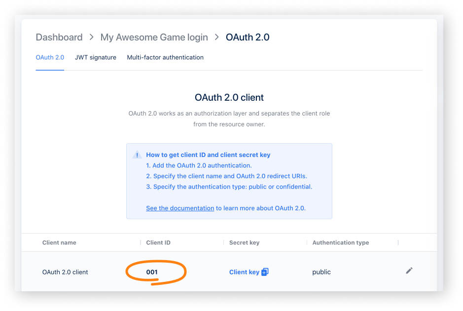 - 客户端ID。可在发布商帐户中登录管理器 > 您的登录管理器项目 > 安全性 > OAuth 2.0部分找到。