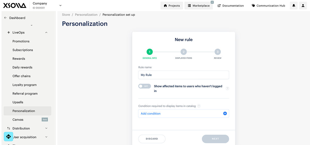 - 在发布商帐户中打开您的项目,前往LiveOps > 个性化部分。